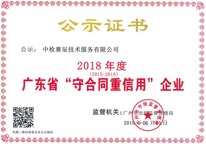 日前,廣東省市場(chǎng)監(jiān)督管理局正式公示了2018年度“廣東省守合同重信用企業(yè)”名單,中檢賽辰技術(shù)服務(wù)有限公司憑借良好的信譽(yù)與契約精神順利通過評(píng)審,已連續(xù)四年(2015-2018)獲得此項(xiàng)殊榮,同時(shí)彰顯了中檢賽辰企業(yè)的信用體系建設(shè)及維護(hù)合同信用等方面得到工商和市場(chǎng)監(jiān)管部門的高度認(rèn)可。